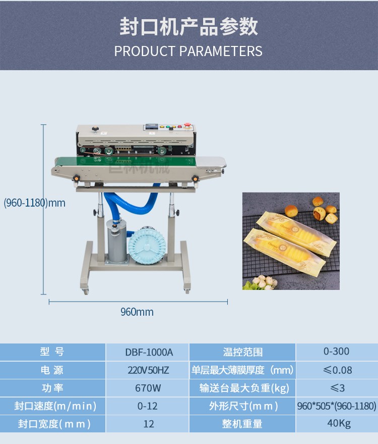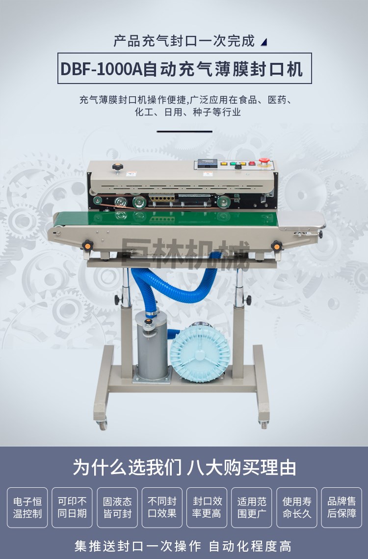 • 名 稱: 自動充氣薄膜封口機 型 號: DBF-1000