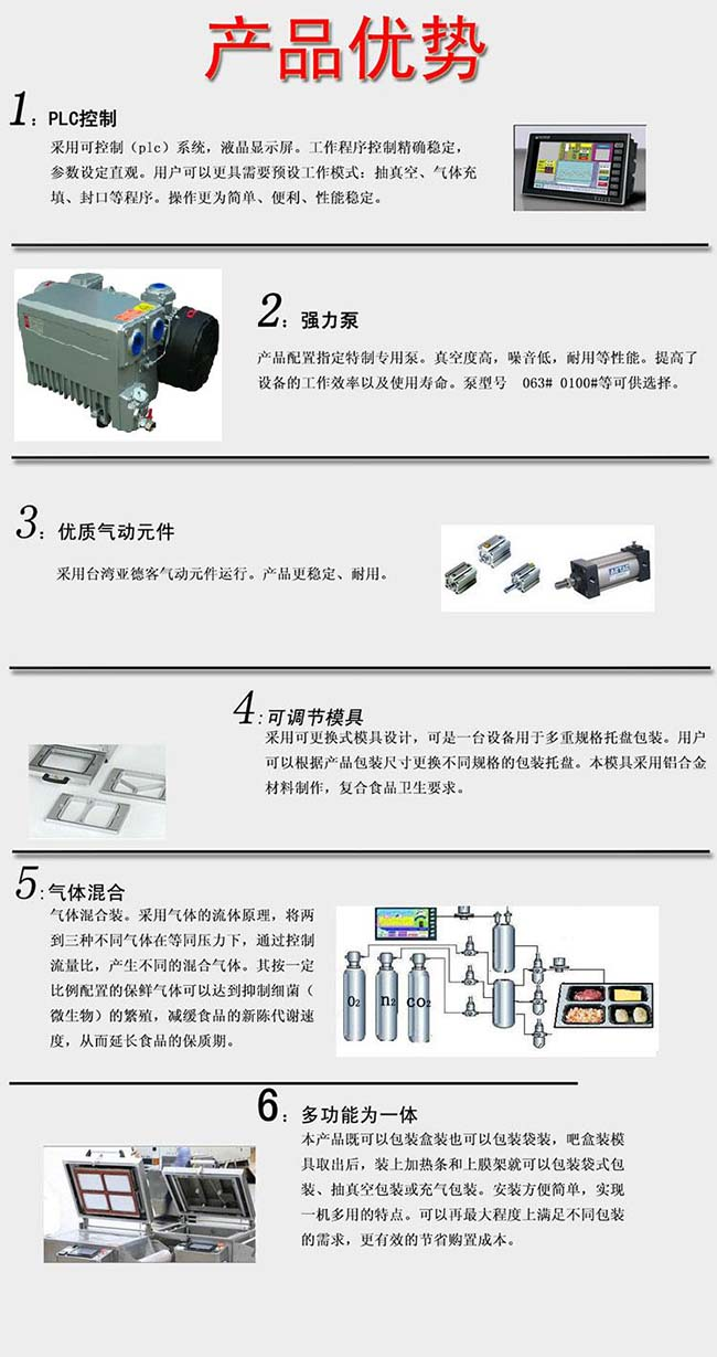 1.    本公司針對連鎖店、超市、專賣店、實驗室、小型食品生產(chǎn)企業(yè)等推出的一款突破性設(shè)計真理氣調(diào)保鮮包裝機。